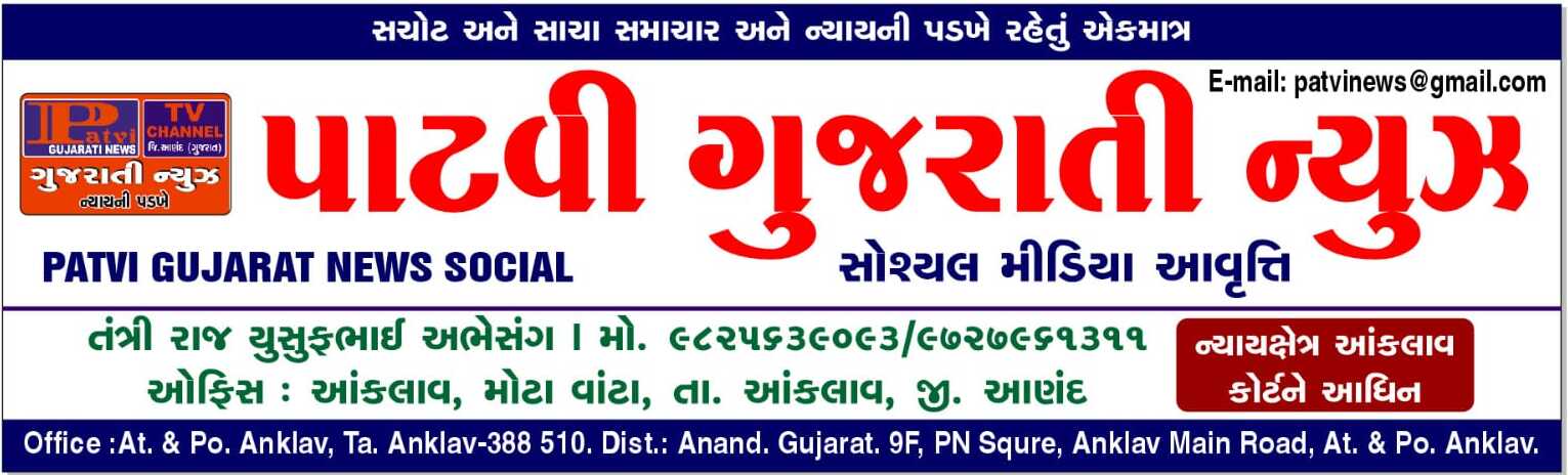 - આણંદ જિલ્લા ભાજપ સંગઠન.માઇનોરીટી જિલ્લા ઉપપ્રમુખ તરીકે આંકલાવના સુનિલભાઈ ઈસુભા રાજની .નિમણૂક થવા બદલ પાટવી ગુજરાતી ન્યુઝ પરિવાર તરફથી ખુબ ખુબ અભિનંદન શુભેચ્છાઓ પાઠવવામાં આવે છે