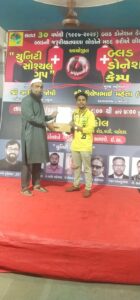 *યુનિટી સોશ્યલ ગૃપ* કી જાનીબ સે આજ વાડી,બવાહિર હોલ મે *બ્લડ ડોનેશન* કેમ્પ કા આયોજન કિયા ગયા.ઇસ કેમ્પ મે *725* લોગો ને આકાર અપના બ્લડ ડોનેટ કિયા,ઇસ બ્લડ કેમ્પ મે *125* મહિલાઓ ને અપના બ્લડ ડોનેટ કિયા મે સભી *725* બ્લડ ડોનર કા તહે દિલ સે યુનિટી સોશ્યલ ગૃપ કી જાનિબ સે શુક્રિયા અદા કરતા હું. મહેમાન તરીકે ધારાસભ્ય શૈલેષભાઈ મહેતા સૌટા સાહેબ એડવોકેટ મુફતી ઈમરાન સાહબ દરેક ધોરણને આકર્ષક ગિફ્ટ આપવામાં આવ્યું સતત 30 વર્ષથી વડોદરા ની અંદર ચાલતું એકમાત્ર કેમ યુનિટી સોસીયલ ગ્રુપ વડોદરા